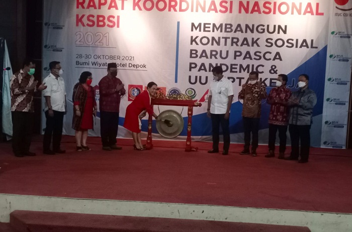 INAnews.co.id, Jakarta – Presiden Konfederasi Serikat Buruh Seluruh Indonesia (KSBSI) Elly Rosita Silaban membuka Rapat Koordinasi Nasional (Rakornas) 2021. Rakornas ini bertajuk “Membangun Kontrak Sosial Baru Pasca Pandemic & UU Cipta Kerja”.