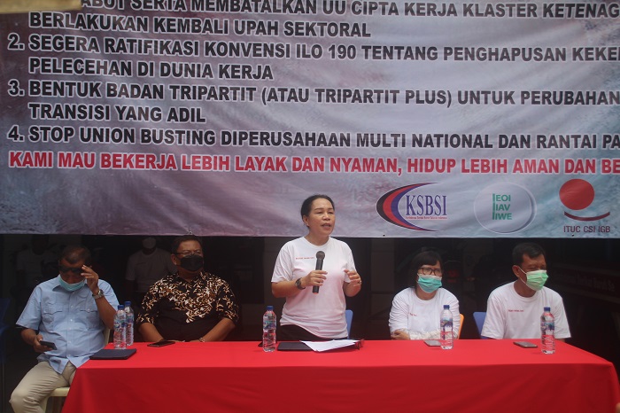 INAnews.co.id, Jakarta – Dalam memperingati atau ‘International World Days for Decent Work’ atau Hari Pekerjaan Layak Internasional, Konfederasi Serikat Buruh Seluruh Indonesia (KSBSI) menggelar kampaye Kerja Layak di kantor pusat KSBSI pada Kamis (7/10/2021).