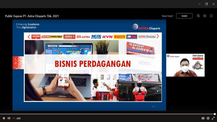 Direktur Perseroan Yusak Kristian Solaeman akan memberikan pemaparan mengenai kinerja segmen perdagangan Perseroan secara virtual pada Public Expose PT Astra Otoparts Tbk 2021.
