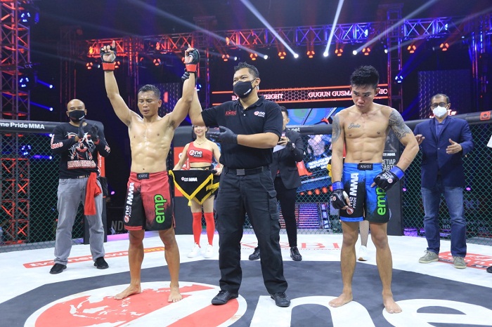 One Pride MMA Fight N 53 Gugun (RED) berhasil mengalahkan VS Brandon (BLUE)