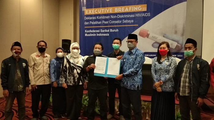 Pada acara tersebut juga dilakukan penandatangan Deklarasi Komitmen Non Diskriminasi HIV/AIDS, masing-masing oleh Ketua Sarbumusi Kota dan Kabupaten Sukabumi, Wakil Presiden Sarbumusi, Walikota Sukabumi, Pejabat Dinkes Kota Sukabumi, Pejabat Disnakertrans kota Sukabumi, Ketua Organda Sukabumi, Kepala Terminal Sukabumi dan Pejabat Komisi Penanggulangan AIDS Nasional (KPAN) Jawa Barat.