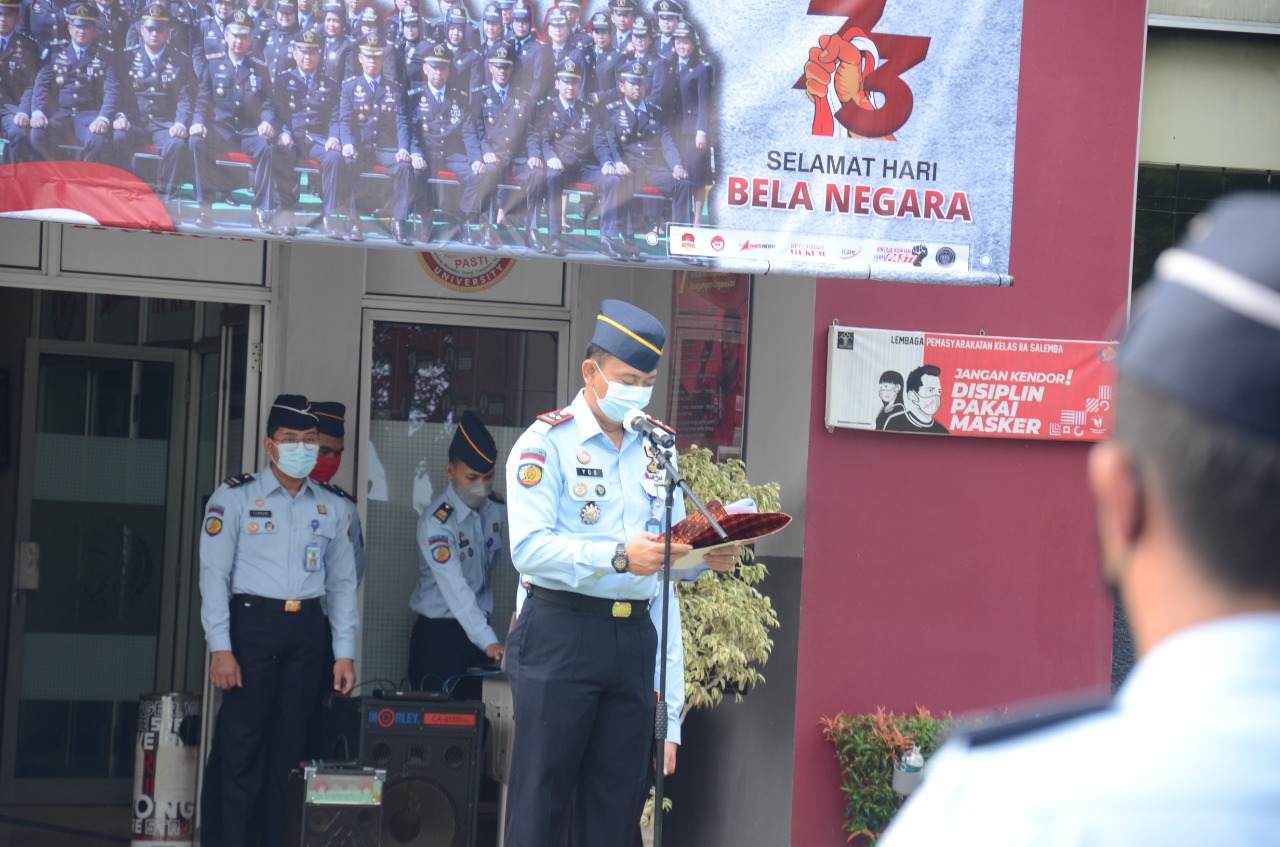 ” Keutuhan wilayah dan keselamatan bangsa dan negara yang dijiwai oleh kecintaanNya kepada Negara Kesatuan Republik Indonesia (NKRI). Tugas bela negara bukan hanya tugas TNI dan POLRI semata, namum bela negara merupakan tugas dan kewajiban kita semua sebagai warga negara Indonesia, sebagai bagian dari komponen bangsa”, sambung Kalapas Salemba.