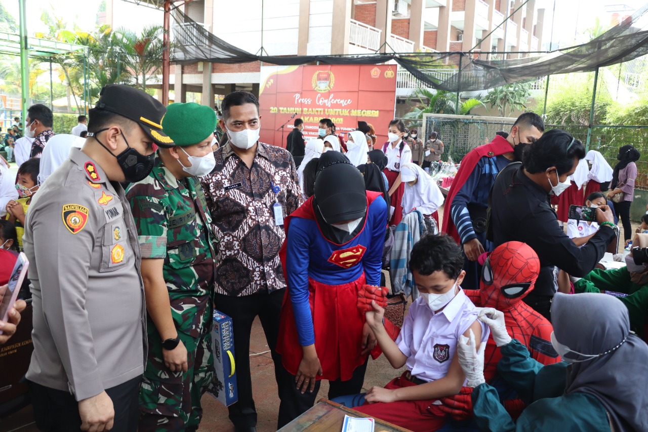 Oleh karena itu, kepada orang tua atau pengasuh, kapolres mengimbau untuk dapat membujuk anak, agar mau divaksin Covid-19.
