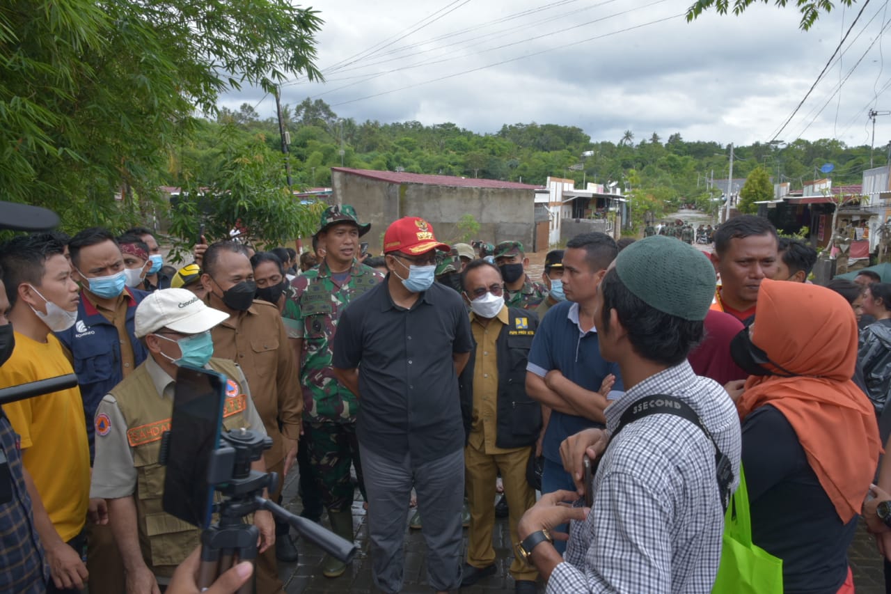 Dalam meninjau lokasi banjir, gubernur NTB didampingi Danrem 162 Wira Bhakti Brigjen TNI Ahmad Rizal Ramdhani, Kalak BPBD NTB, Kadis Sosial, Kadis PUPR NTB dan sejumlah lembaga relawan masyarakat.