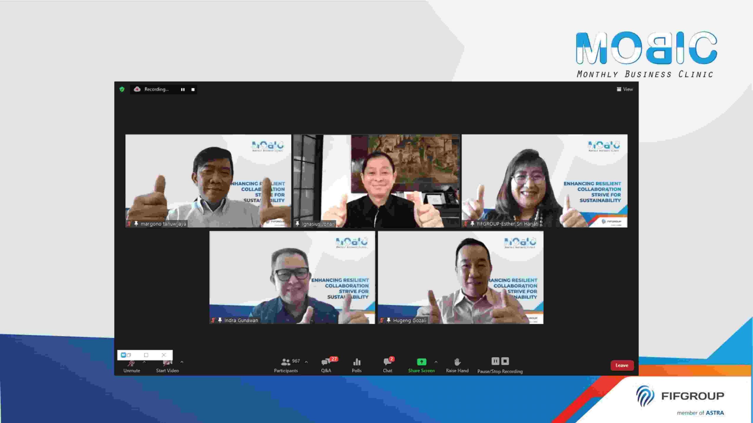 “Leader harus mampu memberikan arahan yang jelas bagi timnya, sehingga menjadi teladan agar tim yang dia pimpin dapat berjalan menuju kesuksesan. Tentunya, untuk mencapai kesuksesan tersebut dibutuhkan kerja keras dan tanggung jawab dari seorang leader yang dapat menghasilkan nilai tambah dari tim yang dipimpinnya,” ungkap mantan Menteri Energi dan Sumber Daya Mineral (ESDM) periode 2016-2019, Ignasius Jonan, dalam acara Monthly Business Clinic (MOBIC) FIFGROUP yang diadakan secara virtual pada Kamis, 20 Januari 2022 dengan tema “Enhancing Resilient Collaboration, Strive for Sustainability.”