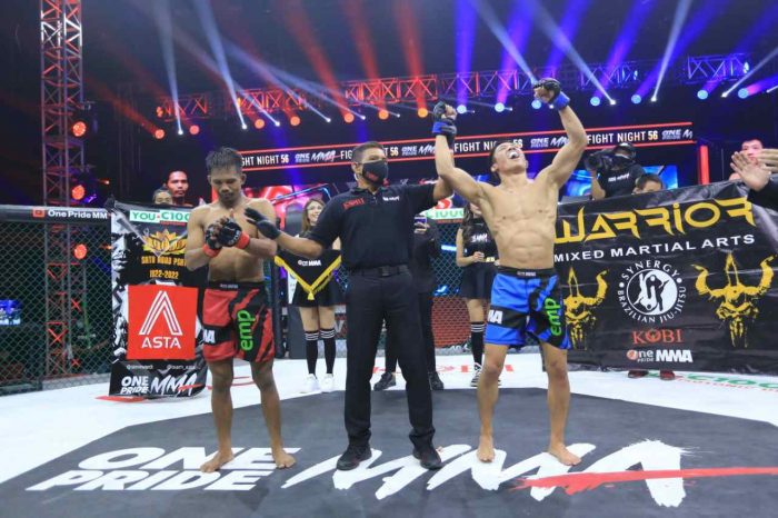 INAnews.co.id, Jakarta – Fight Night 56 The Mega Fight menjadi Laga pembuka OnePride MMA musim 2022 sukses digelar tadi malam (12/02/2022). Dalam Fight Night 56 tadi malam menyajikan empat partai terbaik, yakni Interim Title Fight kelas Flyweight, Catchweight kelas Welterweight, Contender Fight kelas Welterweight dan Contender Fight kelas Lightweight.