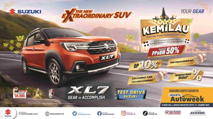 INAnews.co.id, Jakarta – Sebagai peserta pameran otomotif Jakarta Auto Week (JAW) 2022 yang dilangsungkan dari 12 hingga 20 Maret mendatang, PT Suzuki Indomobil Sales (PT SIS) menawarkan promo besar-besaran selama pameran berlangsung. Tak tanggung-tanggung, setiap pengunjung akan mendapatkan promo reguler KEMILAU (Kemerlap Rezeki Melimpah Awal Tahun), GEMPITA (Gemerlap Profit Tahun Baru), program insentif PPnBM 50% (sesuai syarat dan ketentuan yang berlaku), serta promo khusus selama JAW untuk setiap pembelian mobil-mobil unggulan Suzuki, seperti XL7, All New Ertiga, New Carry Pick Up, APV, New Ignis, dan SX4 S-Cross.