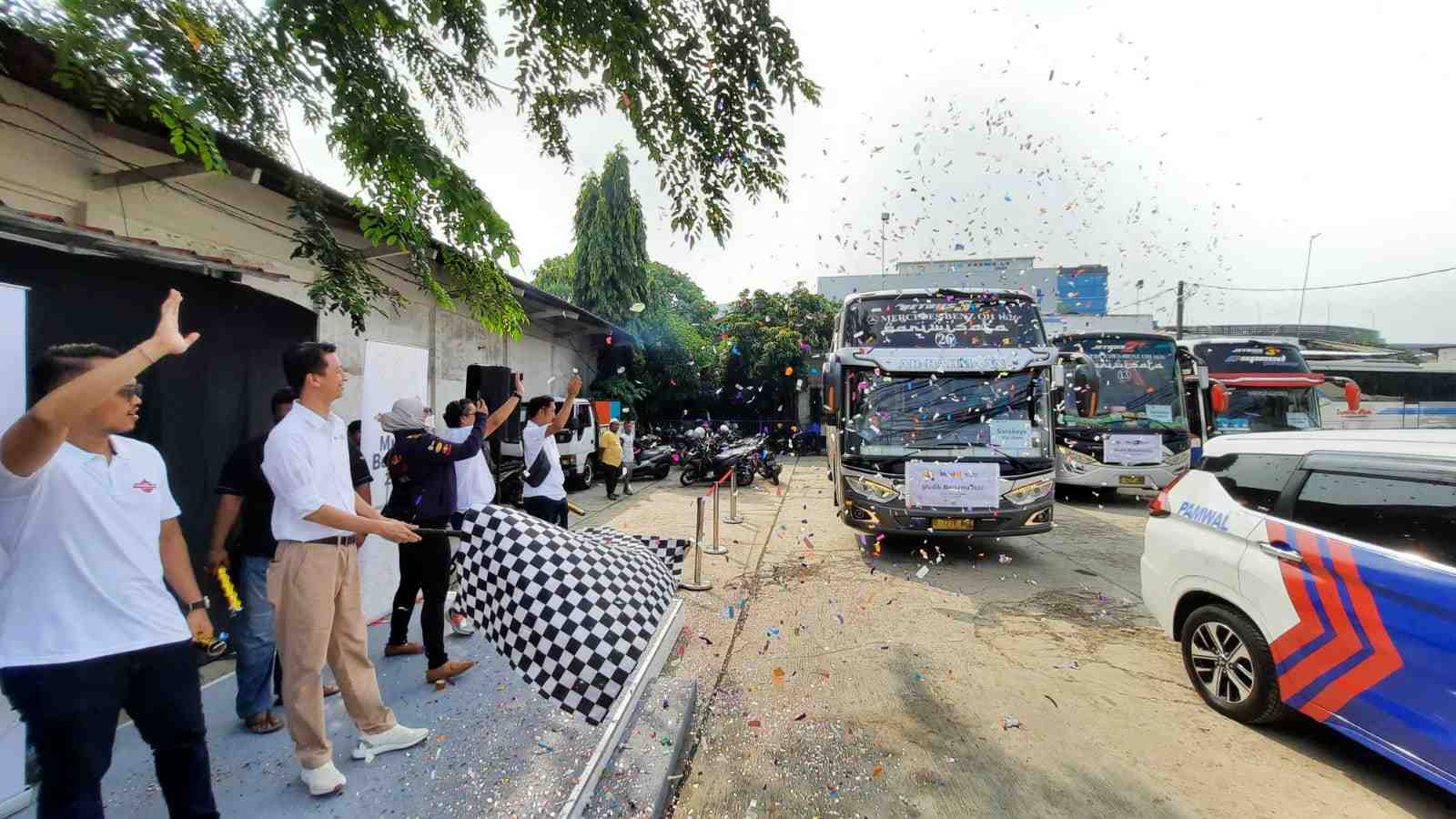 Pelepasan mudik gratis yang di adakan oleh PT EMLI dan IPOMI.
