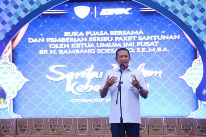 INAnews.co.id, Depok – Ketua MPR RI sekaligus Ketua Umum Ikatan Motor Indonesia (IMI) Bambang Soesatyo bersama Founder CRK Corporation Chandra Kurniawan menyalurkan paket santunan kepada seribu anak yatim, dalam acara Seribu Malam Keberkahan Otomotif Indonesia. Sebagai bagian mengisi bulan suci Ramadhan, perayaan HUT ke-116 IMI, serta HUT ke-34 Co-Founder CRK Corporation yang merupakan istri Chandra Kurniawan, Kuntum Raisa.