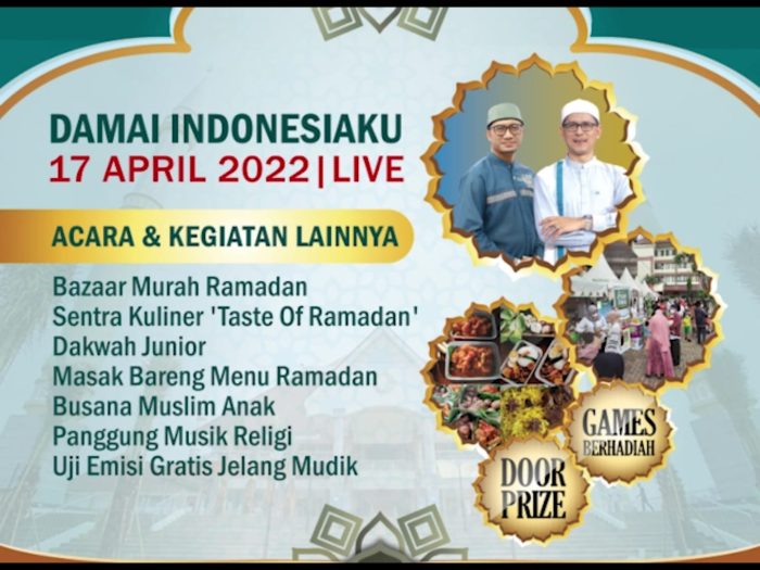 Nantikan dan jangan lupa untuk datang ke Festival Ramadhan Damai Indonesiaku tvOne Minggu, 17 April 2022 di Masjid KH Hasyim Asy’ari Jl Daan Mogot KM 14, Duri Kosambi, Cengkareng, Jakarta Barat.