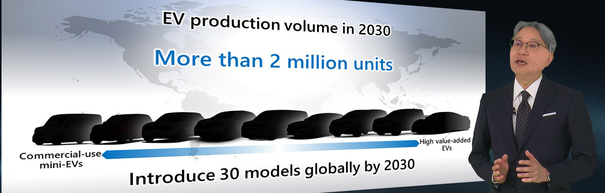 Melalui inisiatif ini, Honda berencana untuk meluncurkan 30 model EV secara global pada tahun 2030, dengan lini yang lengkap mulai dari mini-EV komersial hingga model-model di segmen premium, dimana Honda merencanakan jumlah volume produksi lebih dari 2 juta unit per tahun. Untuk itu, Honda akan mempersiapkan operasional produksi EV di China serta pabrik baru di kawasan Amerika Utara.