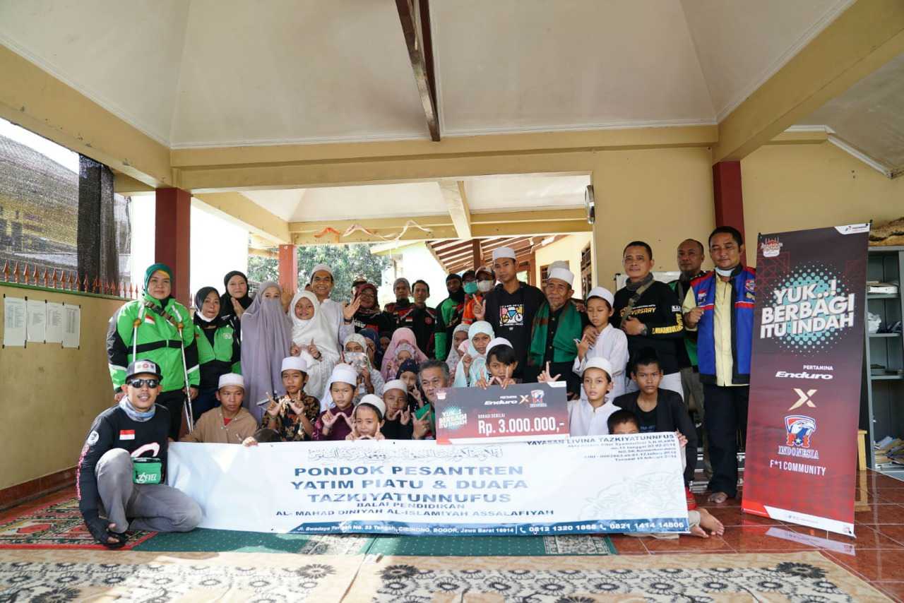 INAnews.co.id, Jakarta – PT Pertamina Lubricants (PTPL) menggandeng komunitas otomotif untuk melakukan donasi ke panti asuhan, pesantren dan yayasan di wilayah Jakarta, Bogor, Tangerang dan Bekasi dalam acara bertajuk “Yuk! Berbagi itu Indah”. Kegiatan yang merupakan bagian dari program “Bangkitkan Harapan bersama Fastron dan Enduro” itu berlangsung pada hari Selasa, 26 April 2022.