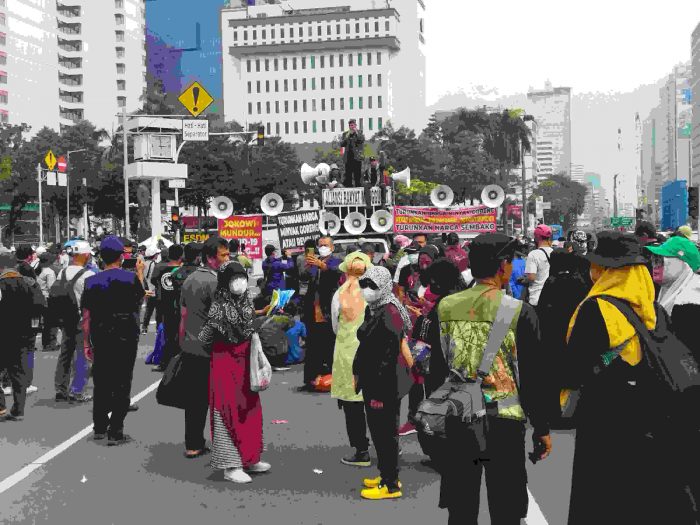“Turunkan harga minyak goreng! Jika tidak bisa menurunkan harga minyak goreng Jokowi mundur,” kata salah satu perwakilan massa dalam orasinya, bahkan beberapa massa datang dengan membawa spanduk bertuliskan “Jokowi Mundur”.