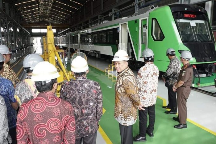 INAnews.co.id, Madiun – Ketua MPR RI sekaligus Wakil Ketua Umum Partai Golkar Bambang Soesatyo meninjau kantor pusat dan workshop PT Industri Kereta Api (INKA) yang sedang memproduksi 53 bus listrik yang akan digunakan sebagai transportasi para delegasi Konferensi Tingkat Tinggi (KTT) G-20, di Bali pada November 2022. INKA memanfaatkan momentum G-20 untuk men-showcase produknya, sehingga bisa lebih banyak mendapatkan kepercayaan pasar internasional. Selain bus listrik, dalam mendukung Presidensi G-20 dan pariwisata Indonesia, INKA juga sedang memproduksi tram mover yang akan digunakan di kawasan Taman Mini Indonesia Indah (TMII), serta mengembangkan autonomous line tracker bus bertenaga baterai, hingga kereta gantung.