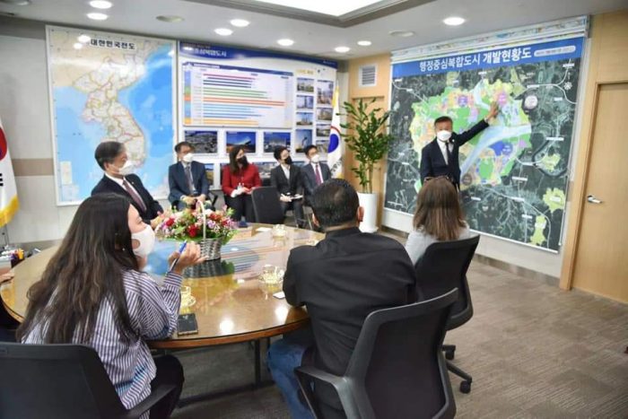Turut hadir pimpinan (Administrator) National Agency for Administrative City Construction (NAACC)/Kepala Otorita Nasional Pembangunan Kota Sejong, Mr Park Mooik.