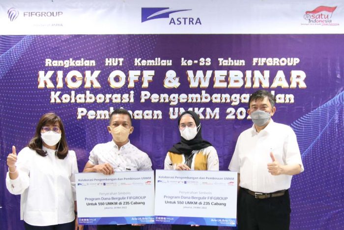 INAnews.co.id, Jakarta – PT Federal International Finance (FIFGROUP), salah satu anak perusahaan PT Astra International Tbk (Astra) yang bergerak di bidang pembiayaan dan juga bagian dari Astra Financial, menyalurkan dana bergulir kepada 550 UMKM beserta pembinaan bersama Astra dan yayasan di bawah Astra sebagai rangkaian perayaan hari ulang tahunnya yang ke-33 tahun pada Mei 2022.