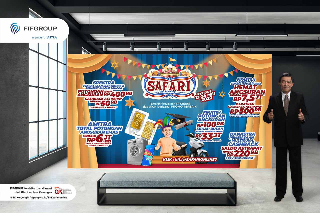 Bersamaan dengan itu, Marketing Director FIFGROUP, Antony Sastro Jopoetro, mengatakan “Pada ajang yang spesial ini, FIFGROUP tawarkan promo dan hadiah yang tentunya sangat sayang dilewatkan. Beragam keuntungan bisa didapatkan dengan bertransaksi di SAFARI Online. Tidak hanya itu, FIFGROUP juga menawarkan kemudahan bagi pelanggan yang bertransaksi di pameran virtual kali ini, hanya dengan mengaksesnya melalui smartphone, pelanggan sudah bisa langsung memilih, membeli, dan membawa pulang produk impiannya.”