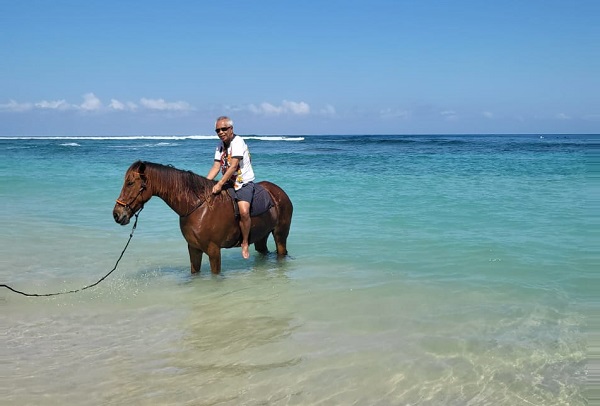 “Sesampai di resort, tamu disambut oleh Resort Manager Mdm.Madlen Ernest, bersama regunya. Mereka semua penduduk asli dengan ucapan selamat datang di Nihi Sumba. Karena beliau asal Swiss, saya sempat berkomunikasi dalam bahasa Jerman, yang disambut dengan penuh semangat, karena tamu-tamu yang berkunjung biasanya berbahasa Inggris. Keramahan pegawai Nihi Sumba sampai akhir libur para tamu. Suatu kenyataan yang membahagiakan dan tak terlupakan,” tutur pengacara segudang pengalaman ini.