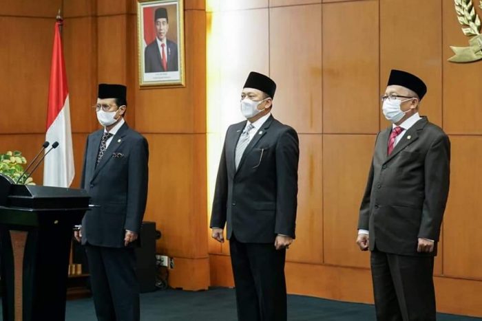 INAnews.co.id, Jakarta – Ketua MPR RI Bambang Soesatyo memandu pengucapan sumpah Anggota MPR RI Pengganti Antar Waktu masa bakti 2019-2024, Herry Erfian, dari Kelompok DPD daerah pemilihan Provinsi Bangka Belitung. Bamsoet kembali mengingatkan setiap anggota MPR RI harus turut menyukseskan berbagai agenda penting MPR RI, khususnya dalam menghadirkan Pokok-Pokok Haluan Negara (PPHN). Sehingga bisa menuntaskan rekomendasi MPR RI tentang PPHN, yang telah melewati dua periode keanggotaan MPR RI (2009-2014 dan 2014-2019).