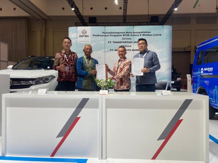 Kerja sama ini ditandai dengan penandatanganan perjanjian untuk uji coba kendaraan DFSK Gelora E yang dilakukan oleh Chief Operating Officer PT Sokonindo Automobile, Franz Wang, dengan Direktur Teknik & Digital Transjakarta, Mohamad Indrayana, di booth DFSK GIIAS 2022.