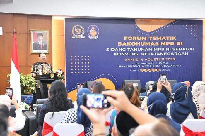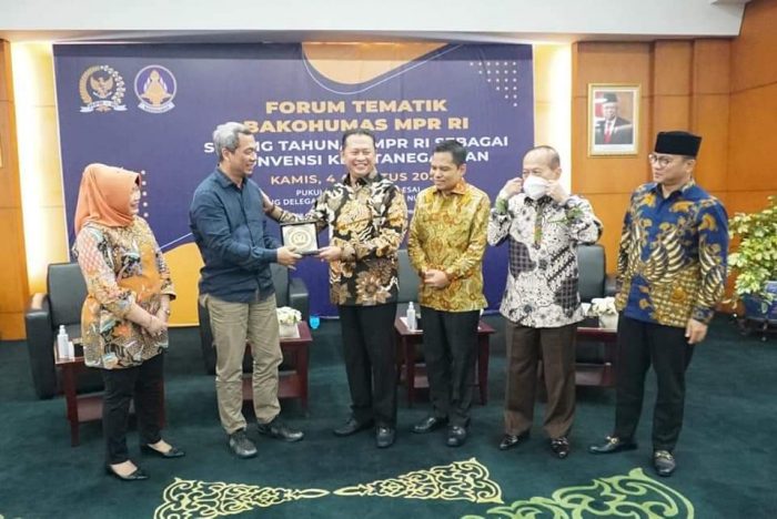 “Artinya, bentuk hukum yang paling ideal adalah diatur dalam Ketetapan MPR, dengan melakukan perubahan terbatas terhadap UUD NRI Tahun 1945. Namun melihat dinamika politik yang berkembang, perubahan terbatas UUD tersebut sulit untuk direalisasikan pada tahun ini, sehingga menghadirkan PPHN dalam bentuk hukum Ketetapan MPR melalui konvensi ketatanegaraan menjadi langkah terobososan yang rasional,” pungkas Bamsoet.