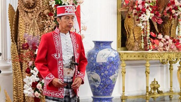 “Dulu pernah Aceh, Sumatera Barat, pernah juga Kalimantan Selatan, pernah Sunda, pernah Jawa, Betawi, kemudian ke sana Bali, Sasak, Bugis, pernah semua. Memang kekayaan budaya pakaian adat ini memang ribuan. Jumlahnya ribuan. Nanti sampai ke Maluku, Papua, semuanya nanti semuanya akan kita angkat,” ucap Presiden pada HUT ke-75 RI.
