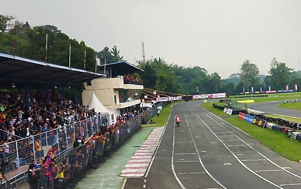 “Perjalanan balapan tadi, di lap awal saya posisi ketiga, terus maju jadi kedua, takut terlalu lama akhirnya saya paksa untuk maju ke posisi pertama. Di race kedua ini saya belajar dari race pertama tinggal jaga ritmenya saja” kata Gilang Akbar, Rider Oneprix.