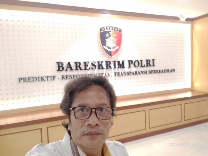 Ta’in Komari saat menyampaikan surat laporan di Bareskrim Mabes Polri terkait dugaan korupsi Masjid Tanjak di Batam pada Rabu 28 september 2022 (foto : istimewa)