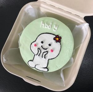 Design korean bento cake dapat berupa tulisan, gambaran, sampai dengan 3D Characters.