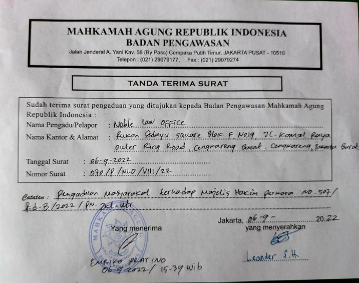 Atas putusan PN Jakarta Utara tersebut korban perkara penipuan dan penggelapan dengan modus investasi pengadaan masker dan alat kesehatan (alkes) senilai Rp 109 milyar datangi Badan Pengawasan (Bawas) Mahkamah Agung Republik Indonesia, pada Selasa 6 september 2022.