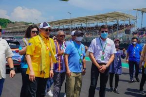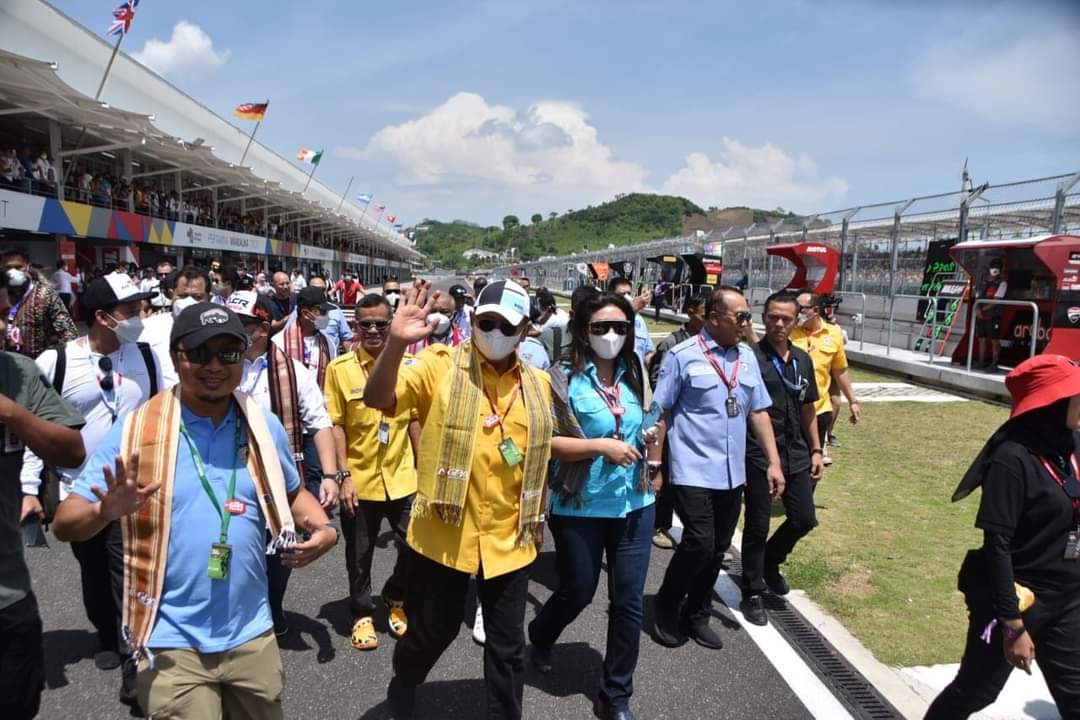 INAnews.co.id, Lombok – Ketua MPR RI sekaligus Ketua Umum Ikatan Motor Indonesia (IMI) dan Wakil Ketua Umum Partai Golkar Bambang Soesatyo mengikuti Grid Ceremony Race 2 World Superbike 2022. Mengumandangkan lagu Indonesia Raya bersama 45 ribu lebih penonton yang hadir langsung di Pertamina Mandalika International Street Circuit, di Lombok, Nusa Tenggara Barat (NTB), Minggu (13/11/22). Serta disaksikan langsung oleh ratusan juta pasang mata dari berbagai kalangan warga dunia yang menyaksikannya dari televisi di masing-masing negaranya.