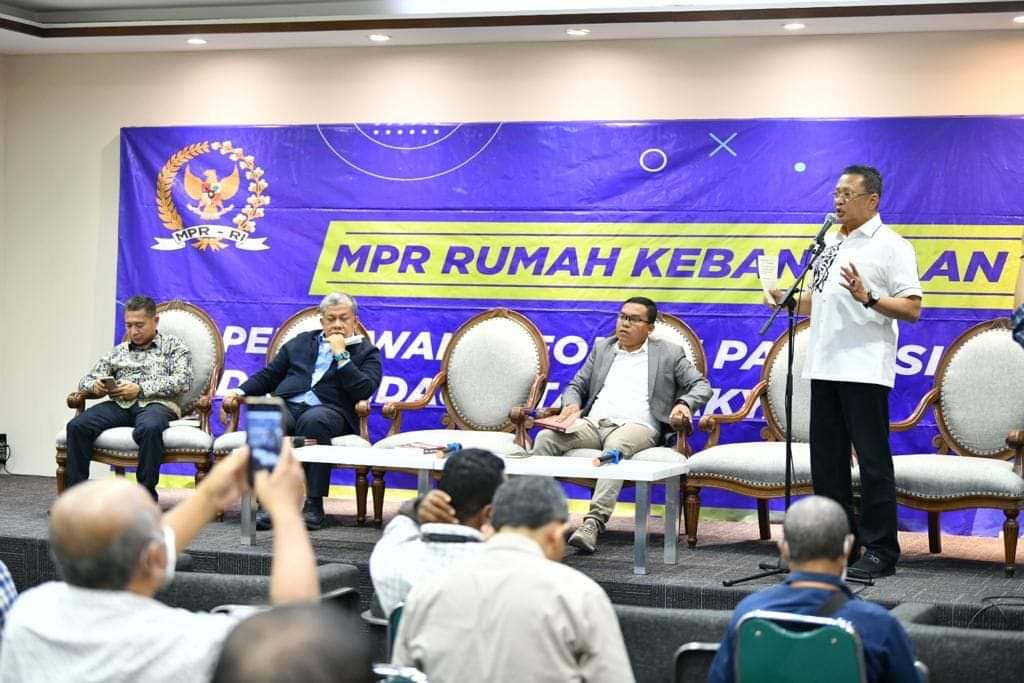 “Dari lima konsep di atas, konsep kedua dan kelima merupakan konsep terbaik. Karena judicial review dengan mengembalikan kewenangan MPR mengeluarkan TAP baru yang bersifat mengatur atau regeling dan konvensi ketatanegaraan, merupakan sumber hukum tata negara yang memiliki kekuatan hukum mengikat dalam praktik berhukum di Indonesia maupun di dunia internasional,” tandas Bamsoet.
