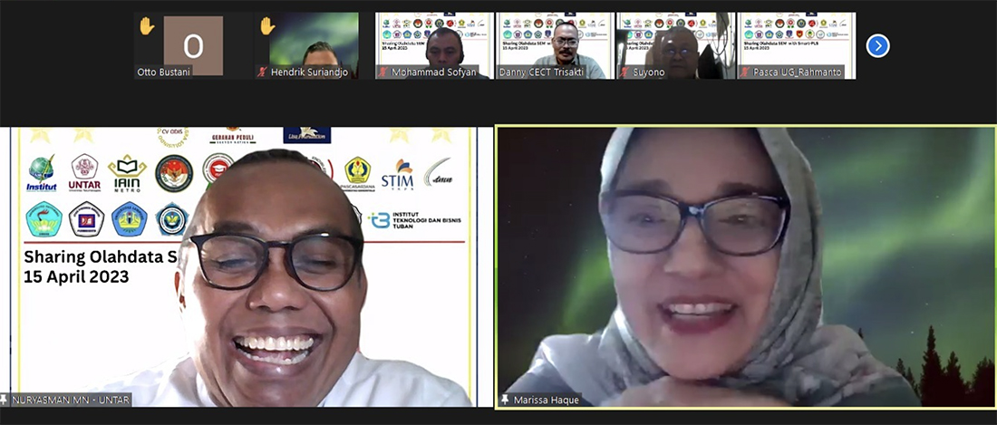 Sedangkan kegiatan webinar Sharing Olahdata dan Analisis SEM dengan Smart-PLS for Windows yang dilaksanakan Tanggal 15 April 2023 dengan pemateri Dr. Nuryasman MN, SE, MM (dosen Universitas Tarumanagara) di ikuti oleh 570 peserta yang terdiri dari ASN / PNS 21 peserta, dosen/pengajar 336 peserta, mahasiswa 197 peserta, pegawai swasta 6 peserta, peneliti 7 peserta, dan wiraswasta 3 peserta dari 28 Provinsi.
