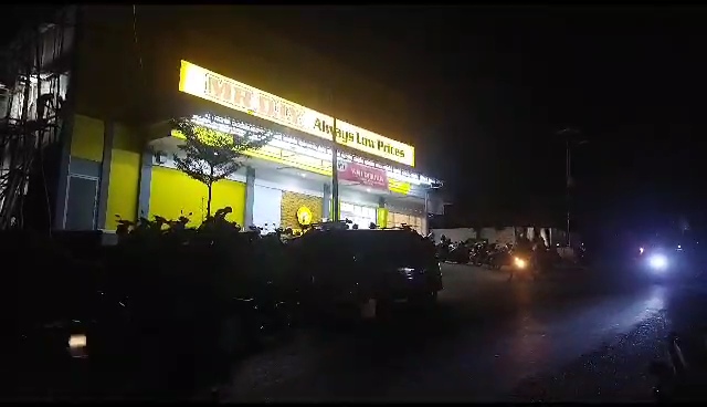 Lahan parkir untuk pelanggan toko pada Rabu malam 23 mei 2023, tampak badan jalan depan Gereja Salom Mokade digunakan lahan parkir ( foto : INAnews)