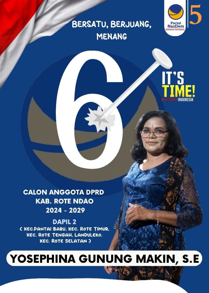 Yosephina Gunung Makin seorang perempuan yang akan mengikuti kontestasi pada Pemilu tahun 2024 dan mencalonkan diri sebagai calon anggota legislatif (caleg) DPRD Kabupaten Rote Ndao Dapil II dari Partai Nasdem.