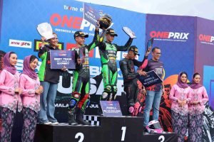 INAnews.co.id, Tasikmalaya – Perhelatan OnePrix 2023 Putaran 3 sukses digelar di Sirkuit Bukit Peusar, Tasikmalaya. Selama dua hari yakni Sabtu (8/7) dan Minggu (9/7), gabungan suguhan sengitnya persaingan di atas lintasan serta sejumlah atraksi pertunjukkan tersaji bagi para pecinta balap sepeda motor.