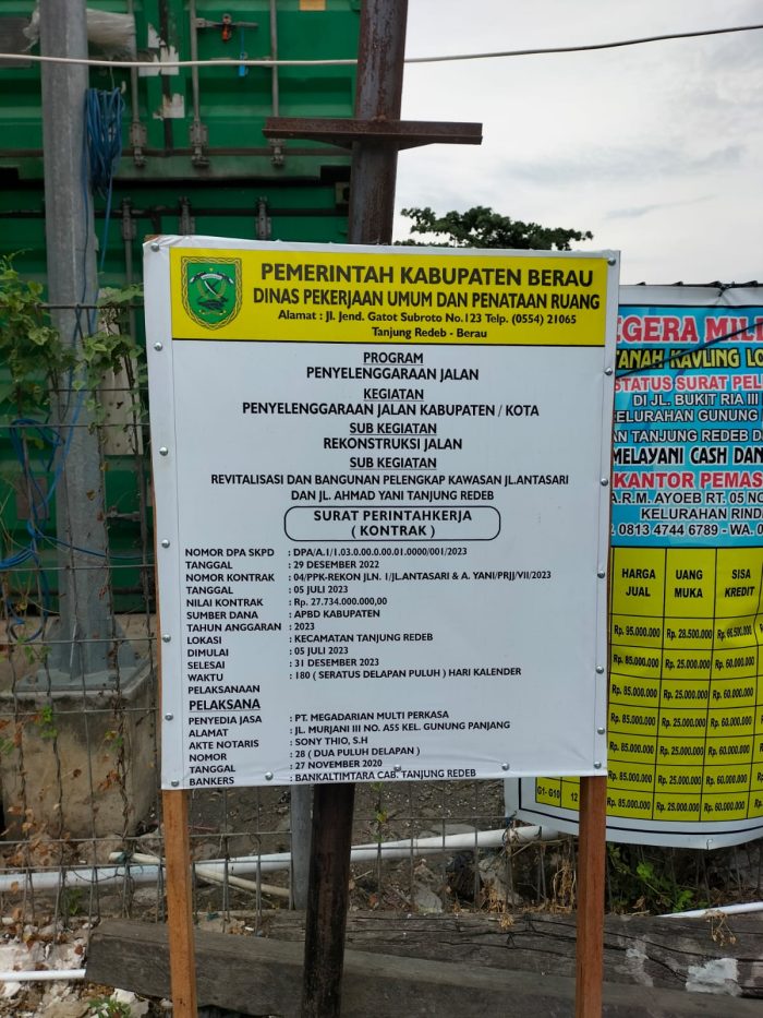 Papan proyek di salah satu kegiatan pembangunan penyelenggaraan jalan Kabupaten Berau dengan memakai anggaran APBD senilai Rp. 27.734.0000 ( foto : dok DRD)