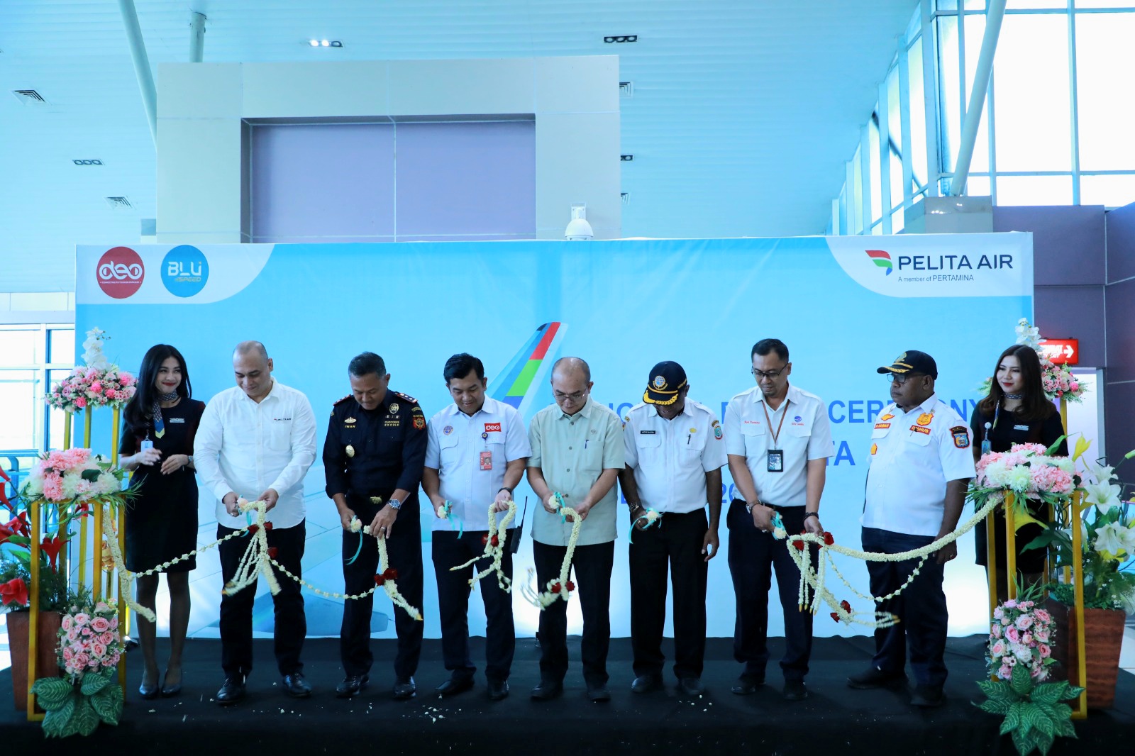 Acara seremoni peluncuran rute ke-10 ini dilakukan di Bandar Udara Domine Eduard Osok (SOQ) Sorong dengan pemotongan pita dan pengalungan bunga oleh jajaran manajemen Pelita Air kepada perwakilan penumpang perdana penerbangan Jakarta-Sorong-Jakarta ( foto ; dok)