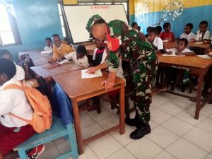 INAnews.co.id, Puncak Jaya – Dalam rangka untuk membangkitkan semangat belajar, meningkatkan mutu pendidikan, serta meningkatkan kualitas dan kuantitas generasi anak bangsa, Danramil 1714-01/Mulia beserta Babinsa mengunjungi SD YPGGI Mulia membagikan berkat berupa telur matang kepada siswa SD YPPGI Mulia yang bertempat di Kampung Pepera Distrik Mulia, Kab Puncak Jaya, Papua, Senin (22/1/2024).