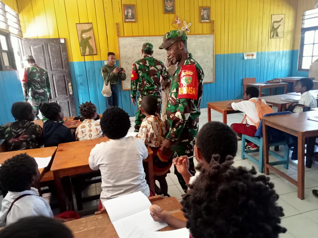 INAnews.co.id, Puncak Jaya – Dalam rangka untuk membangkitkan semangat belajar, meningkatkan mutu pendidikan, serta meningkatkan kualitas dan kuantitas generasi anak bangsa, Danramil 1714-01/Mulia beserta Babinsa mengunjungi SD YPGGI Mulia membagikan berkat berupa telur matang kepada siswa SD YPPGI Mulia yang bertempat di Kampung Pepera Distrik Mulia, Kab Puncak Jaya, Papua, Senin (22/1/2024).