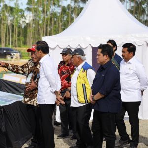 INAnews.co.id, Panajam Paser Utara – Menteri Agraria dan Tata Ruang/Kepala Badan Pertanahan Nasional (ATR/BPN), Hadi Tjahjanto mendampingi Presiden RI, Joko Widodo dalam rangkaian peletakan batu pertama atau groundbreaking serta peninjauan pembangunan Ibu Kota Nusantara (IKN) di Kabupaten Penajam Paser Utara, Provinsi Kalimantan Timur, Rabu (17/01/2024). Terdapat 11 titik groundbreaking dan peninjauan yang dilakukan pada hari ini.