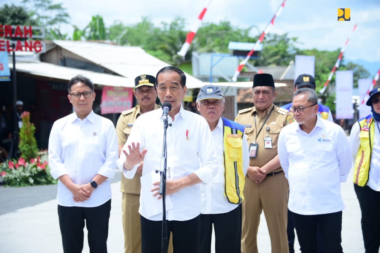 INAnews.co.id, Magelang – Presiden Joko Widodo (Jokowi) didampingi Menteri Pekerjaan Umum dan Perumahan Rakyat (PUPR) Basuki Hadimuljono, Menteri Perdagangan Zulkifli Hasan, Menteri Kesehatan Budi Gunadi Sadikin, Pj Gubernur Jawa Tengah Nana Sudjana, dan Bupati Magelang Zaenal Arifin meresmikan empat ruas jalan daerah di Kabupaten Magelang sepanjang 18,2 km dengan anggaran Rp. 31,9 Milyar.