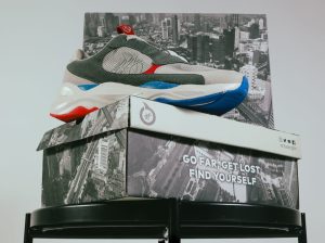 The Vagabond, dengan colorway: concrete, secara desain dan warna tentu menyasar kaum muda yang aktif, eksentrik dan dinamis. Terinspirasi dari landscape perkotaan yang industrialis, penuh beton dan kaca, sepatu ini memiliki dominan warna palet abu-abu pada bagian upper sedingin beton dan diseimbangkan oleh pulasan warna merah biru pada sisi outsole yang mencolok.