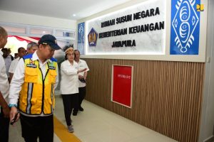 INAnews.co.id, Jayapura – Menteri Keuangan (Menkeu) Sri Mulyani didampingi Sekretaris Jenderal (Sekjen) Kementerian Pekerjaan Umum dan Perumahan Rakyat (PUPR) M. Zainal Fatah dan Direktur Jenderal Perumahan Kementerian PUPR Iwan Suprijanto meresmikan Rumah Susun (Rusun) Negara untuk Aparatur Sipil Negara (ASN) Kementerian Keuangan di Jayapura, Kamis (1/2/2024).