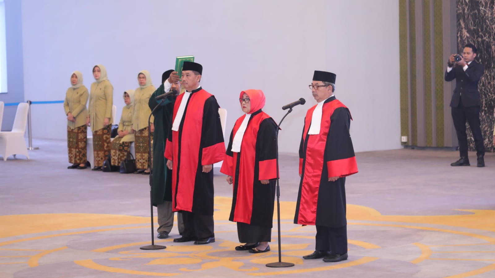 Hadir dalam acara pelantikan ini, Wakil Ketua Mahkamah Agung Bidang Yudisial, Para Ketua Kamar Mahkamah Agung, Pejabat Eselon I dilingkungan Mahkamah Agung, Ketua Umum Dharmayukti Karini dan Ketua Dharmayukti Karini Mahkamah Agung, serta para undangan lainnya.