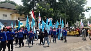 Aksi ini dilakukan di bawah Komando Alson Naibaho Korlap aksi Korwil KSBSI DKI Jakarta.