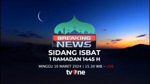 Sidang Isbat Penetapan 1 Ramadan 1445 H, tayang hari Minggu, 10 Maret 2024, pukul 14.30 WIB dan 18.00 WIB. tvOne tentunya tidak akan melewatkan sebuah informasi penting untuk dikabarkan kepada masyarakat yang akan menunaikan ibadah puasa Ramadan. Penyampaian langsung dari berbagai titik lokasi pengamatan hilal dimulainya 1 Ramadan 1445 H. Live report sidang isbat penentuan dimulainya 1 Ramadan 1445 H dari Departemen Agama Republik Indonesia.