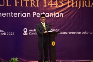 INAnews.co.id, Jakarta – Kementerian Pertanian (Kementan) menggelar halal bihalal idul fitri 1445 hijriah di Kantor Pusat Kementan Jakarta, Sabtu (20/4/2024). Kegiatan ini merupakan rangkaian silaturahmi Menteri Pertanian Andi Amran Sulaiman bersama para pegawai dan keluarga besar kementan usai menjalani ibadah puasa selama satu bulan penuh.