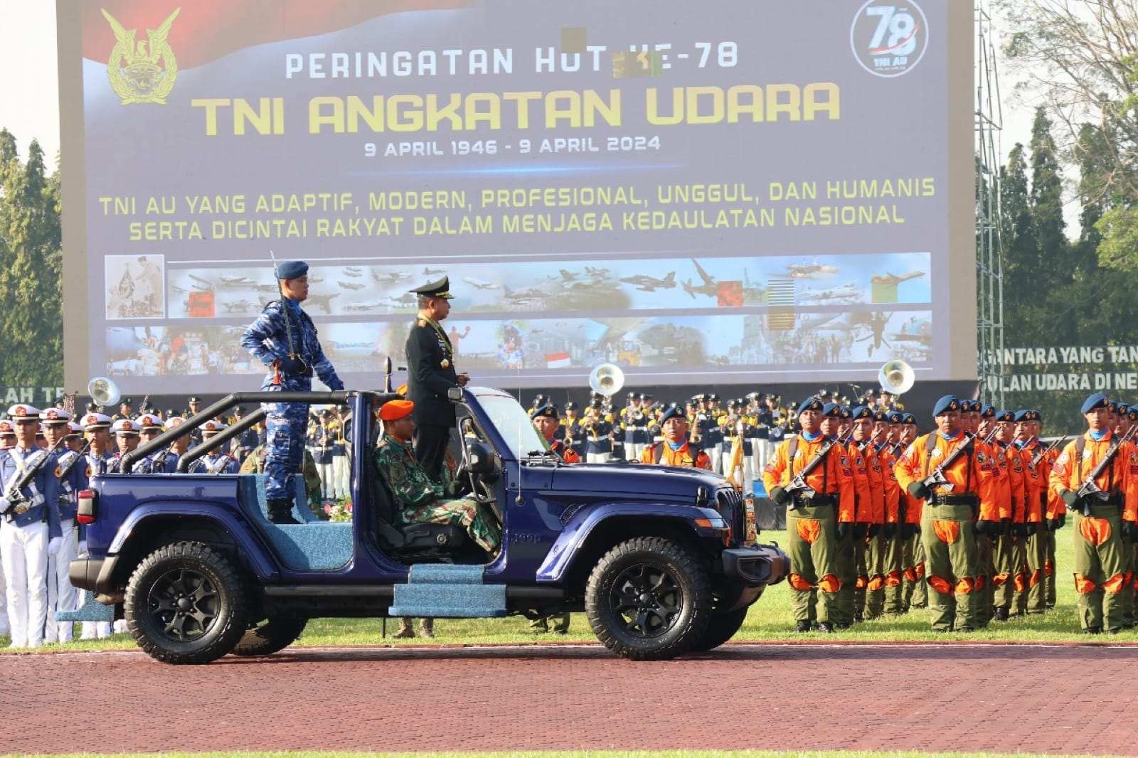 Saya ucapkan selamat ulang tahun yang ke-78 TNI AU, saya juga mengapresiasi dan memberikan penghargaan setinggi-tingginya kepada seluruh prajurit TNI AU atas profesionalitas, dedikasi dan militansi dalam setiap pelaksanaan tugas.