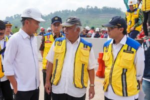 INAnews.co.id,  Sukabumi – Menteri Pekerjaan Umum dan Perumahan Rakyat (PUPR) Basuki Hadimuljono didampingi Pj Gubernur Jawa Barat Bey Machmudin meninjau penanganan darurat Jalan Tol Bogor-Ciawi-Sukabumi (Bocimi) di KM 64+600 A yang mengalami longsor pada Rabu malam lalu (3/5/2024).